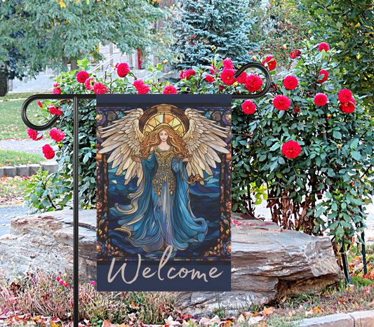 Blue Angel Floral Welcome Garden & House Flag/Banner