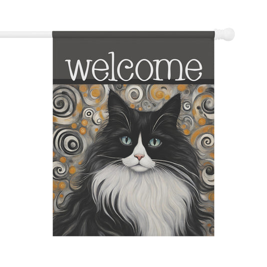 Phyllis Black & White Cat Welcome 2-Sided Garden & House Flag/Banner