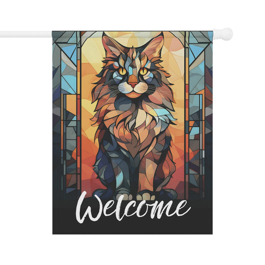 Maine Coon Cat Welcome Stained Glass Look 2-Sided Garden & House Flag/Banner