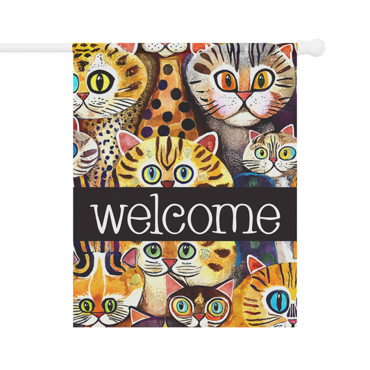 Funky Cats A Plenty Welcome 2-Sided Garden & House Flag/Banner