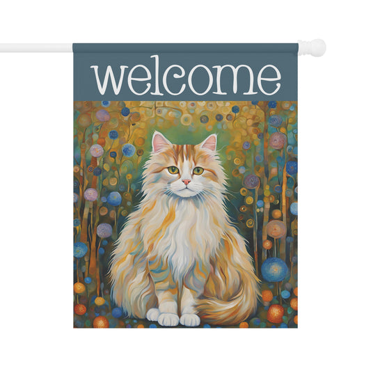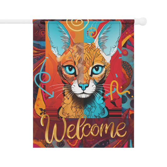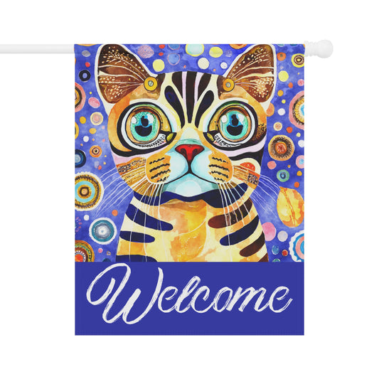 Funky Bright Cat Welcome 2-Sided Garden & House Flag/Banner