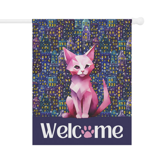 Pink City Cat Welcome 2-Sided Garden & House Flag/Banner