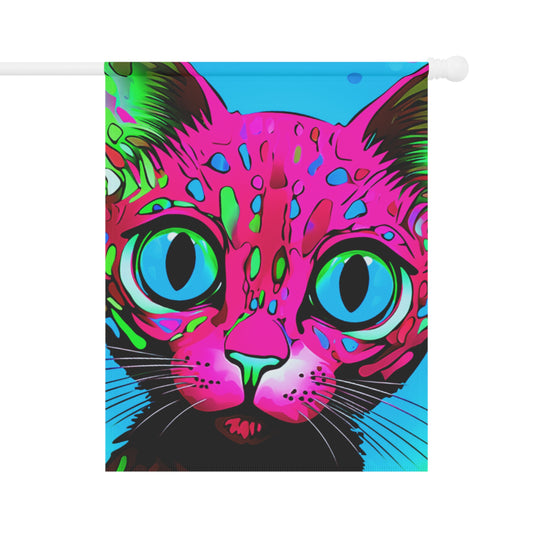 Neon Cat Face Maximalist 2-Sided Garden & House Flag/Banner