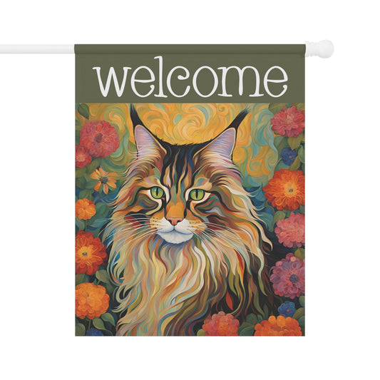 Maine Coon Cat Welcome 2-Sided Garden & House Flag/Banner