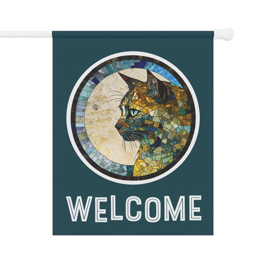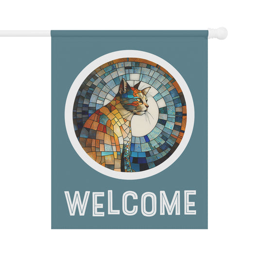 Mosaic Cat Welcome 2-Sided Garden & House Flag/Banner