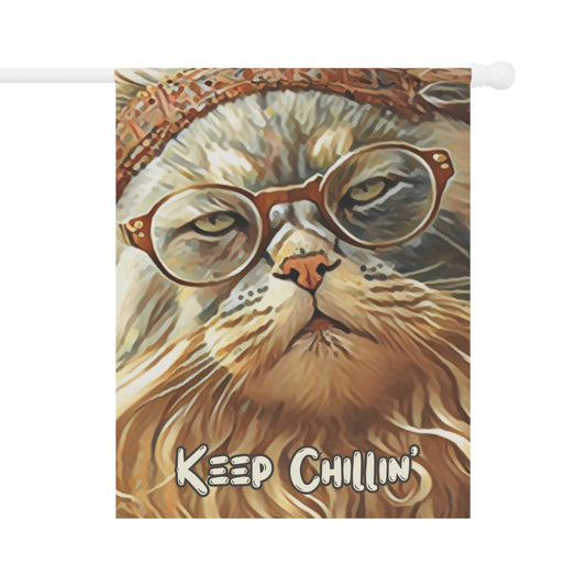 Keep Chillin' Cat in Glasses 2-Sided Garden & House Flag/Banner