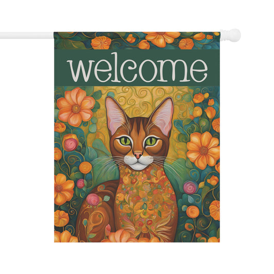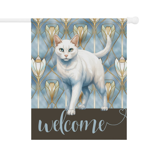 White Cat Welcome 2-Sided Garden & House Flag/Banner