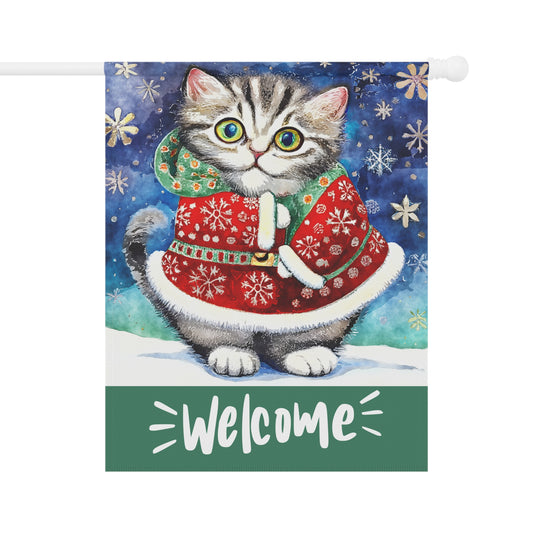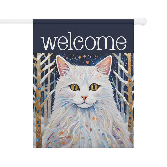 Snowy Cat Welcome 2-Sided Garden & House Flag/Banner