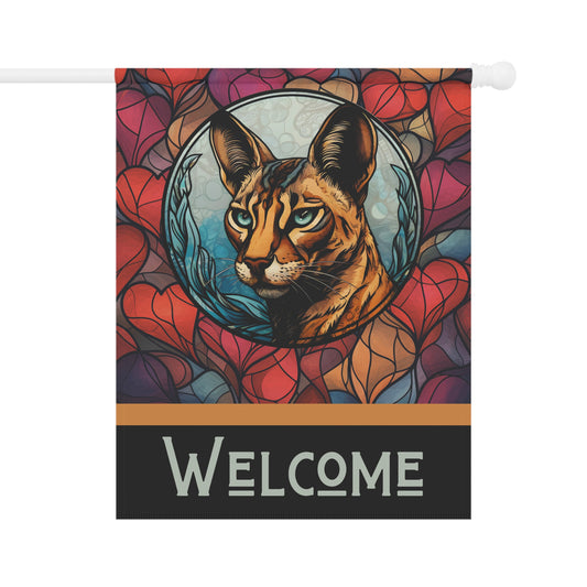 Savannah Cat Welcome Stained Glass Look 2-Sided Garden & House Flag/Banner