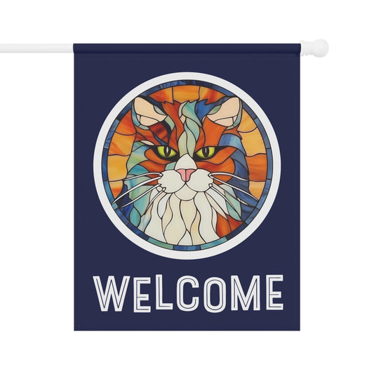 Stained Glass Cat Welcome 2-Sided Garden & House Flag/Banner