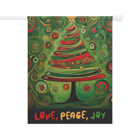 Love Peace Joy Christmas Tree 2-Sided Garden & House Flag/Banner