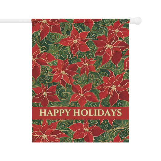 Poinsettias Happy Holidays 2-Sided Garden & House Flag/Banner