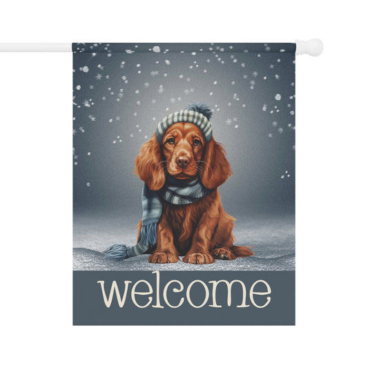 Snowy Welcome Irish Setter in Scarf 2-Sided Garden & House Flag/Banner