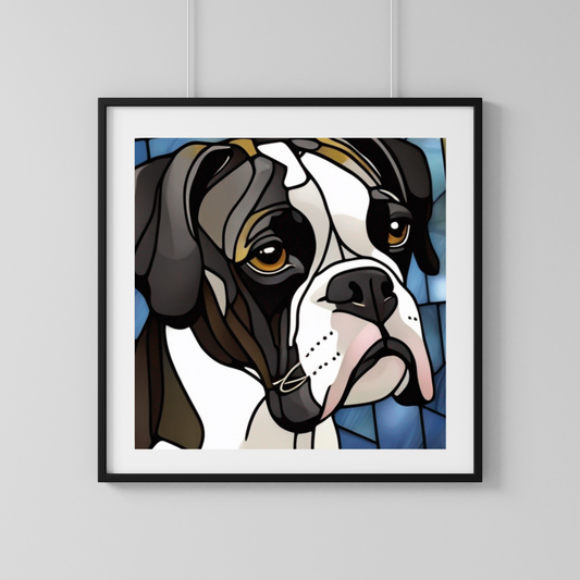 Black & White Boxer Stained Glass Look Poster