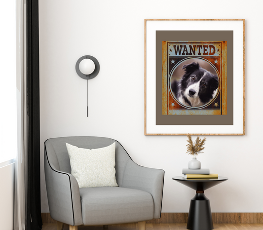Border Collie Mug Shot Wanted Poster