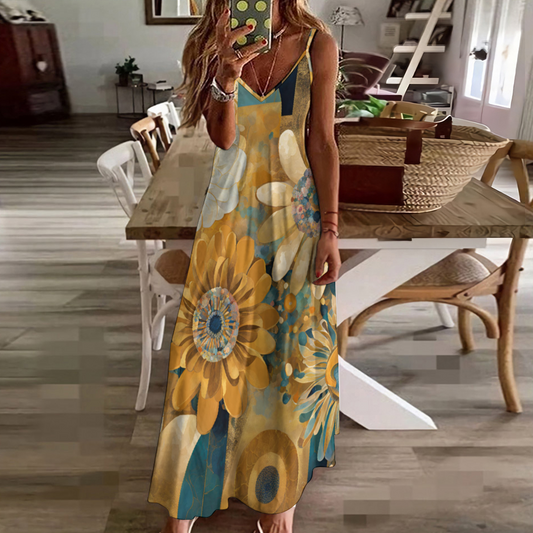 Yellow Daisy Women's Summer Fashion Maxi Slip Dress