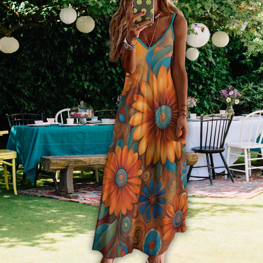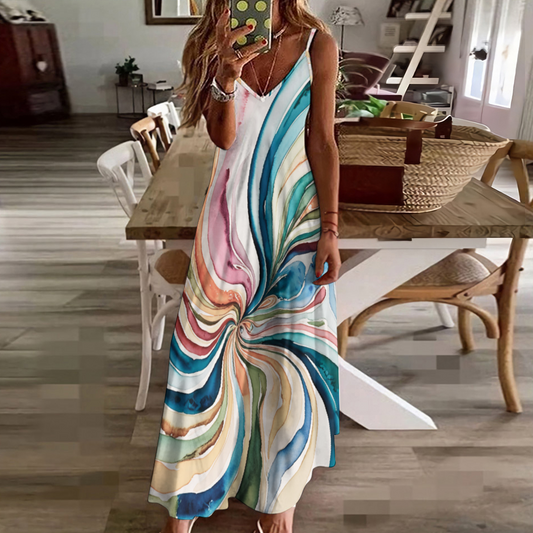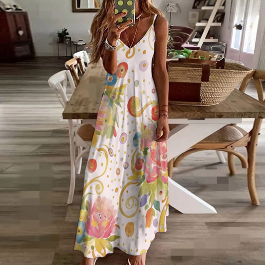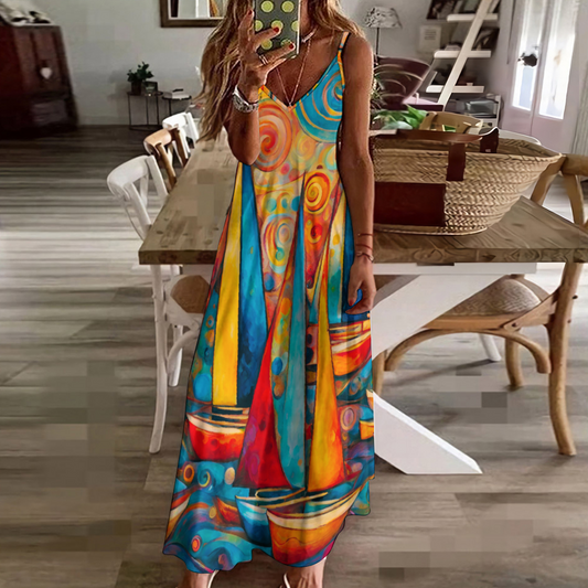 Colorful Sailboat Women's Summer Fashion Maxi Slip Dress