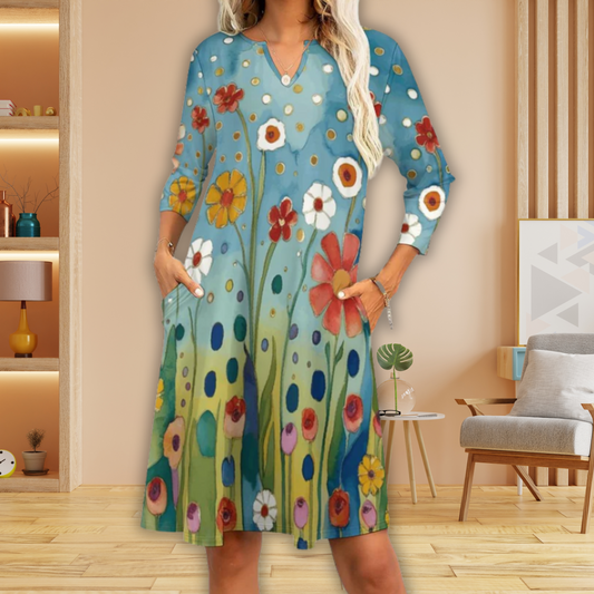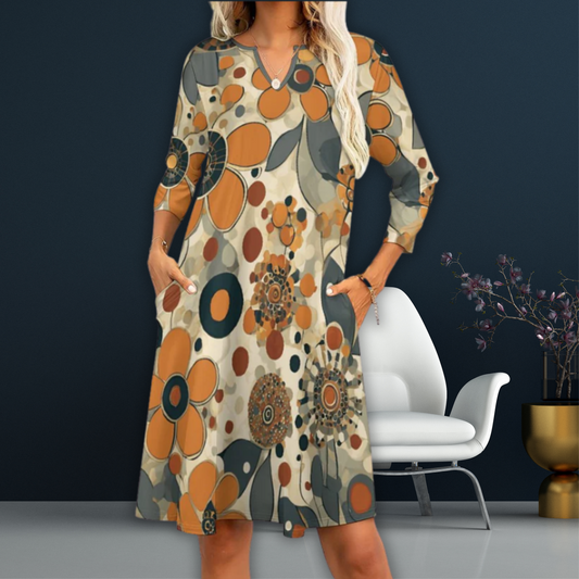 Chasity V-neck 3/4 Sleeve Dress with Pockets