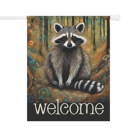 Mountain Forest Raccoon Welcome 2-Sided Garden & House Flag/Banner