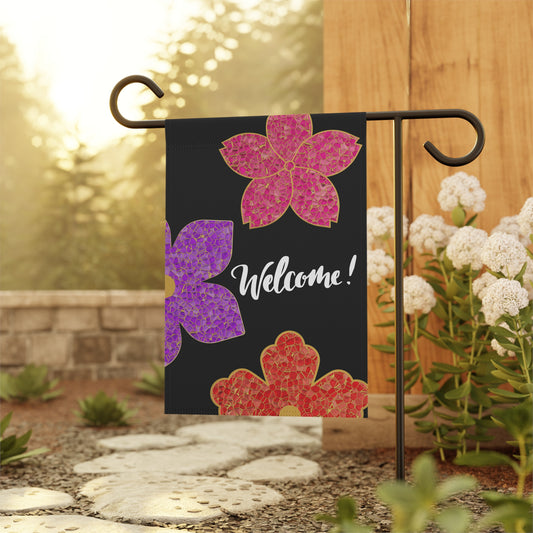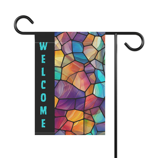 Stained Glass Flowers Welcome 2-Sided Garden & House Banner