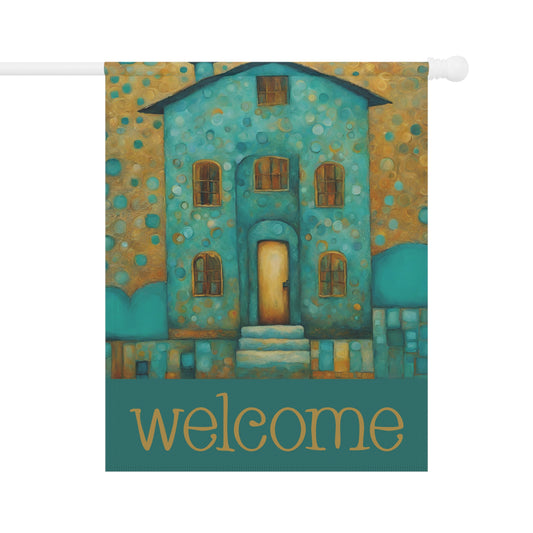 Turquoise House Welcome 2-Sided Garden & House Flag/Banner