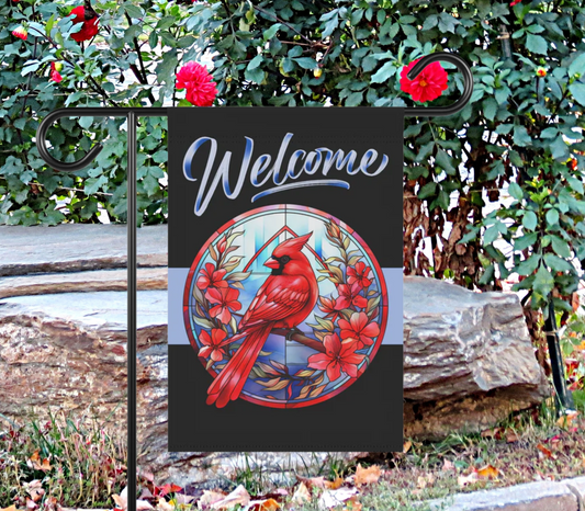 Stained Glass Cardinal 6 Welcome 2-Sided Garden & House Banner