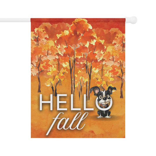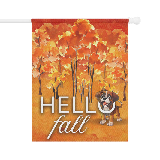 Boxer Hello Fall 2-Sided Garden & House Flag/Banner
