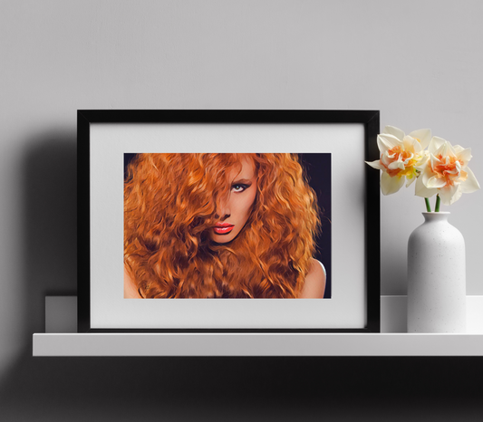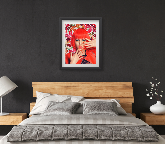 Shanna Woman with Red Bob Hair Flowers Background Art Poster