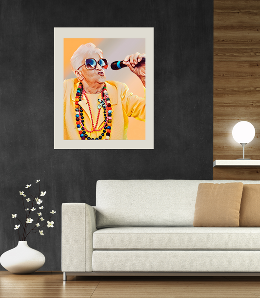 Frieda Rocks Senior Woman in Chucky Necklaces Singing Art Poster