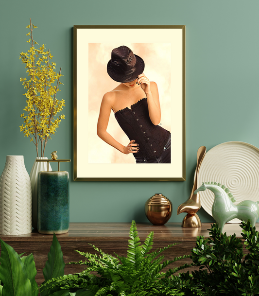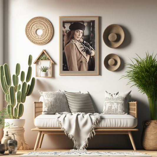 Yvette Woman in Tan Coat Black Gloves & Beret Art Poster