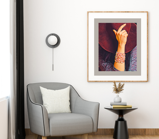 Hiding Maroon Hat Coral Bracelet Art Poster