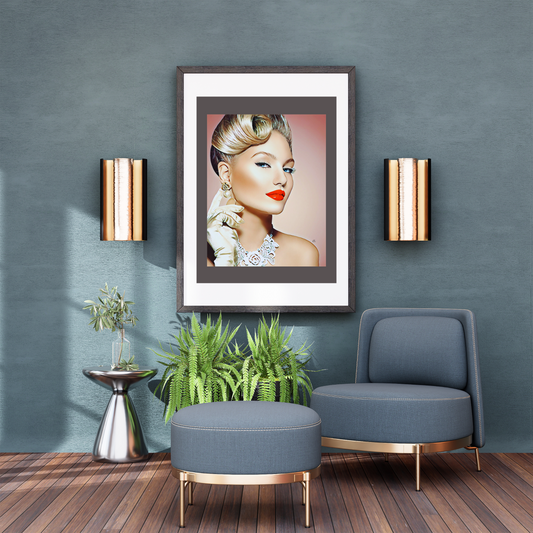 Loren Blonde Woman with Up Do & Red Lips Art Poster