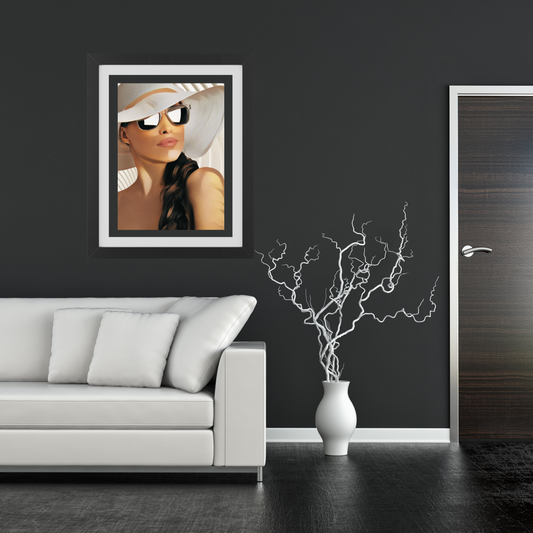 Virginia Brunette Woman in White Hat & Sunglasses Portrait Art Poster