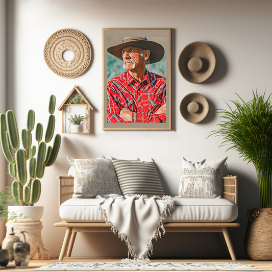 Dusty Senior Cowboy in Red Plaid Shirt Art Poster