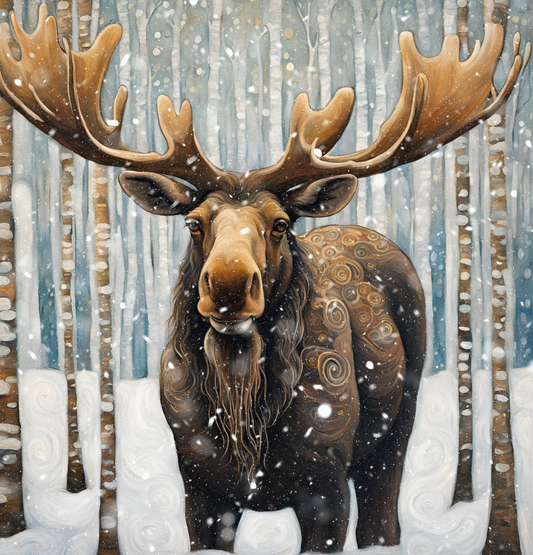 Mountain Forest Snowy Moose Polyester Shower Curtain