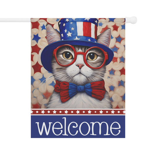 Liberty Cat Welcome 2-Sided Garden & House Flag/Banner