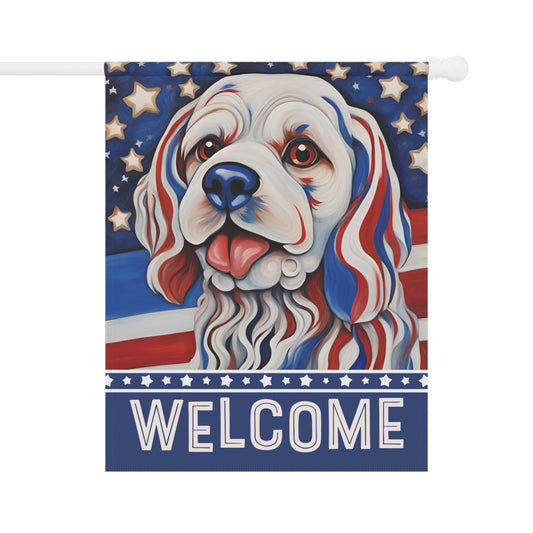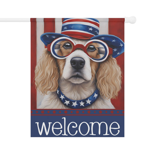 Patriotic Pup Welcome 2-Sided Garden & House Flag/Banner