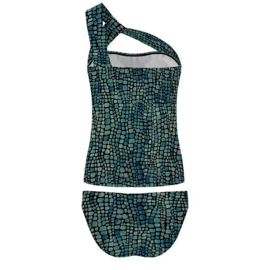 Crocked One-Shoulder Two Piece Tankini Swimsuit