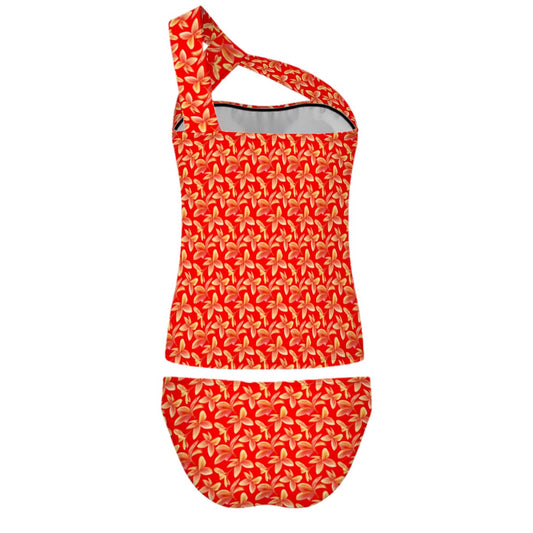 Plumeria One-Shoulder Two Piece Tankini Swimsuit
