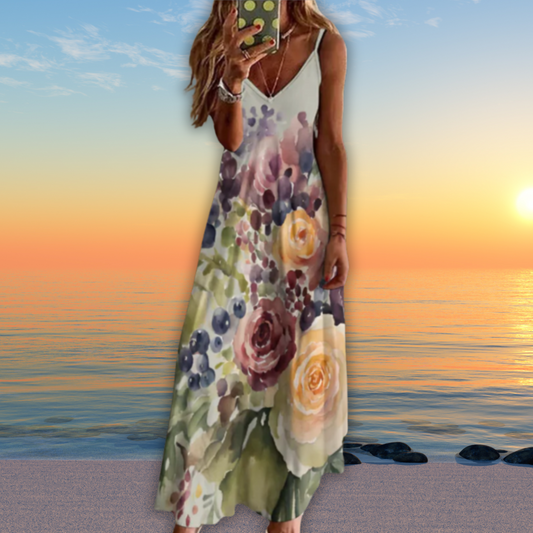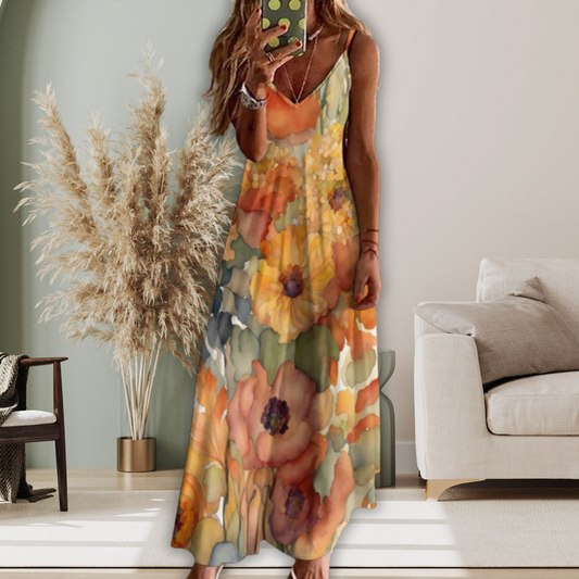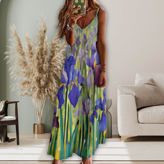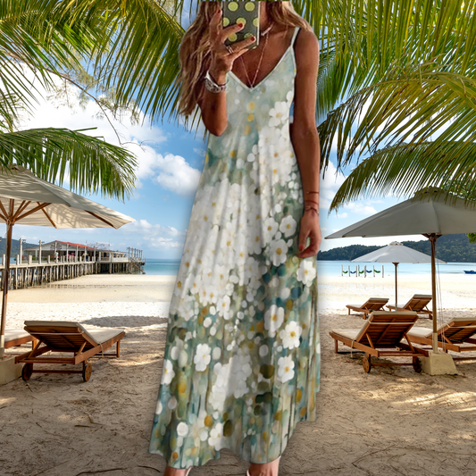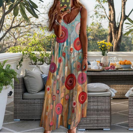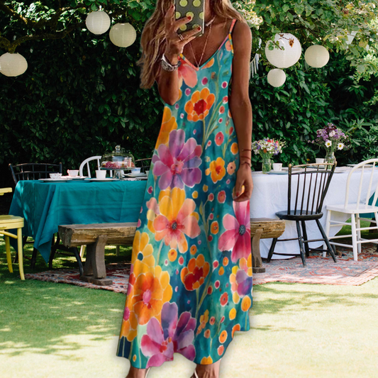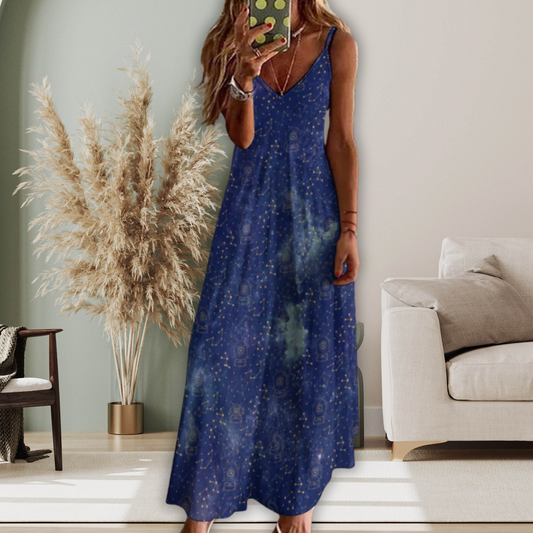Blue Tie Dye Print Women's Summer Fashion Slip Dress