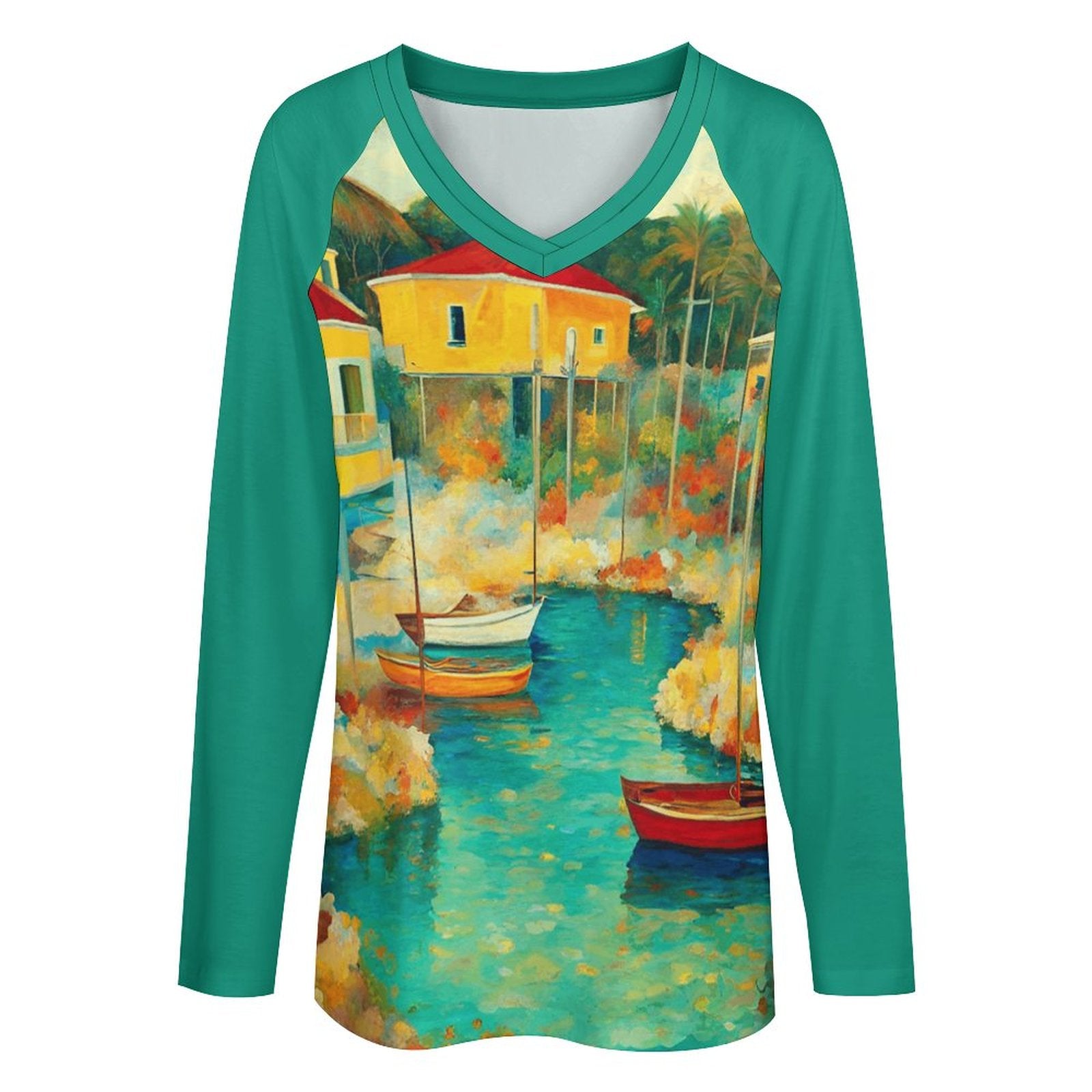 Abacos, Bahamas V-neck Loose Long Sleeve T-shirt