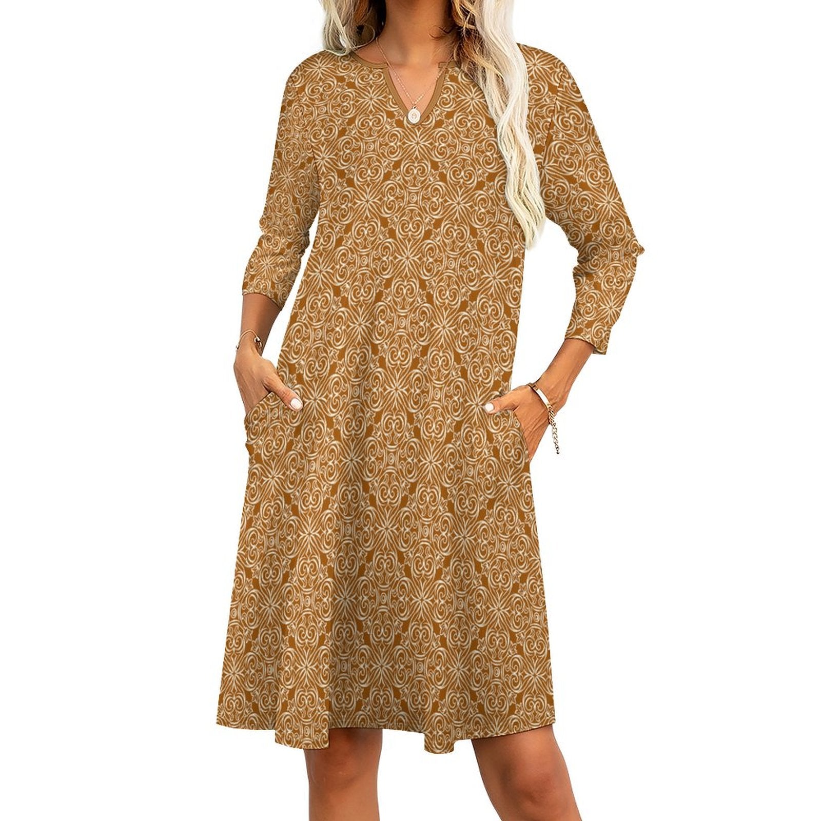 Addie V-neck 3/4 Sleeve Dress with Pockets
