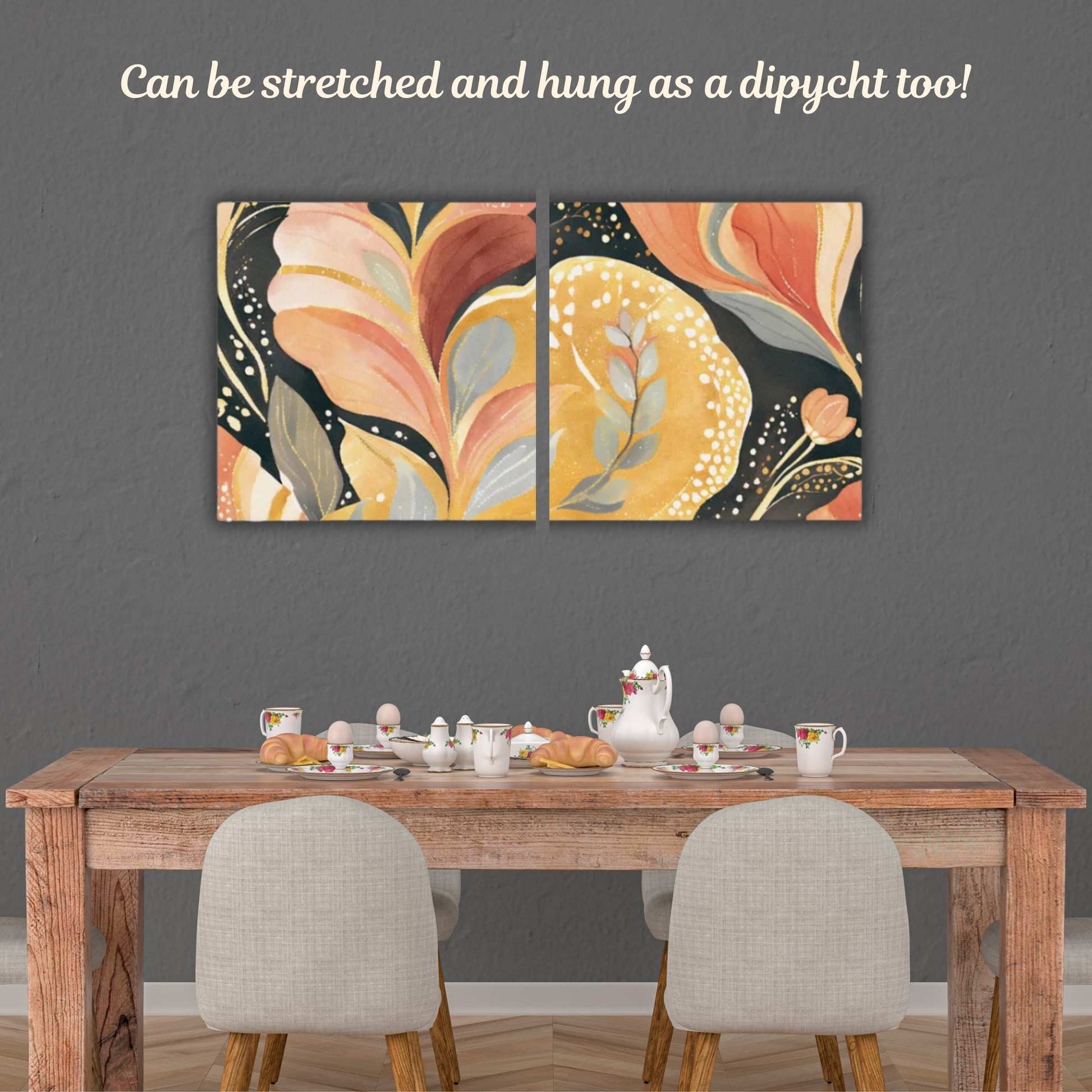 This is a large 60" x 30" piece of upstretched canvas. You can mount to a board, foam board or have it stretched onto a wood frame. It also allows you to be creative and cut in two to make a diptych.