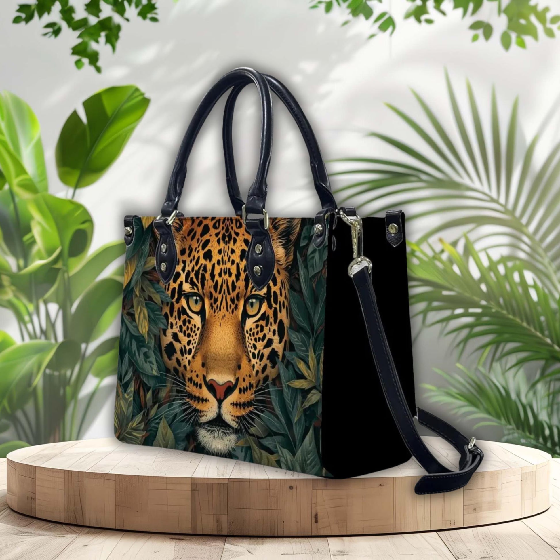 This stunning jaguar art handbag is a real stand out. You're sure to receive many compliments with its unique design. Definitely not your boring bag!