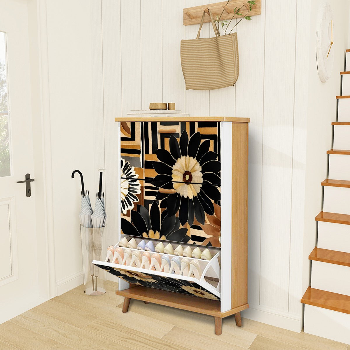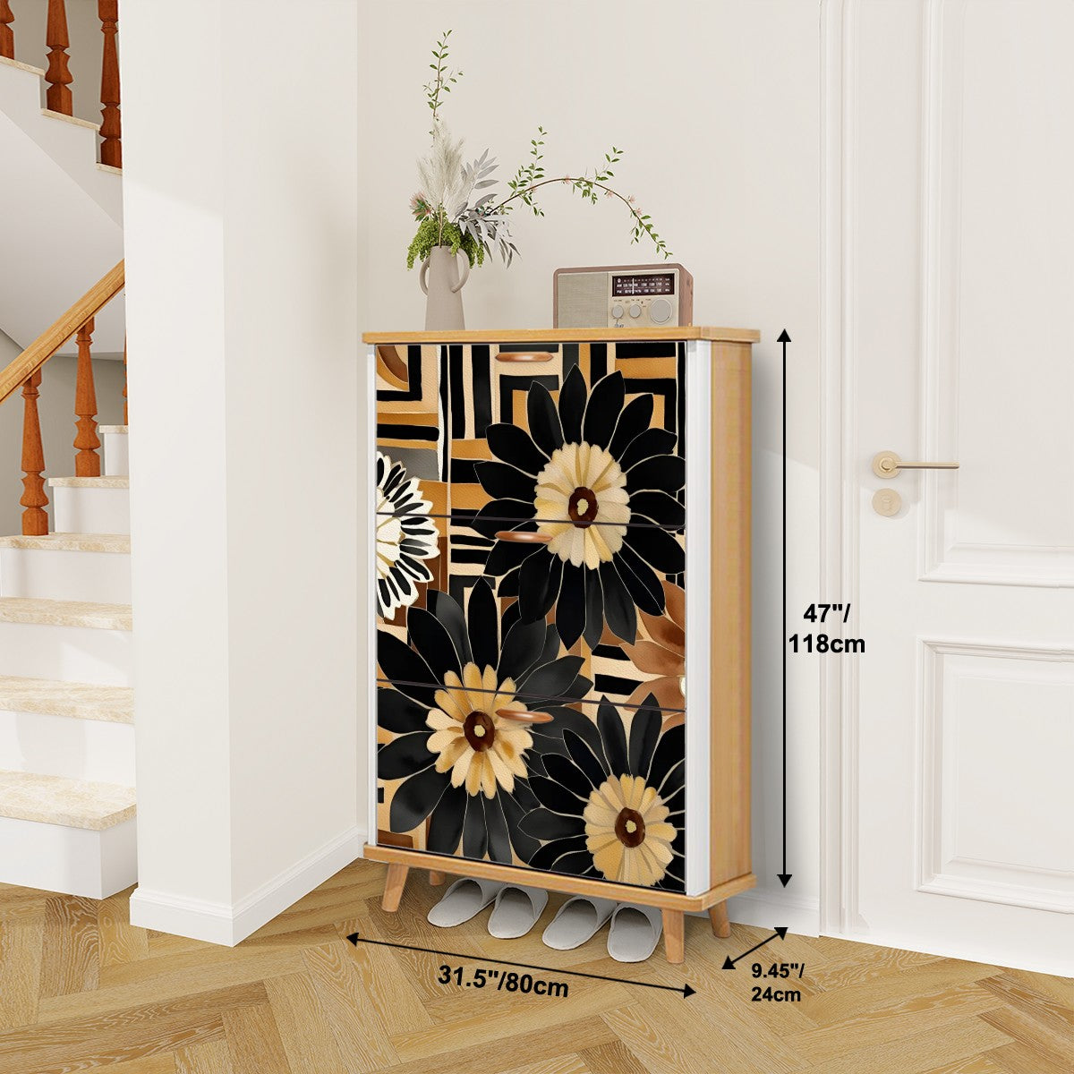 This shoe cabinet with flip doors easily matches any interior décor style. It's an ideal shoe storage solution for entryways, living rooms, bedrooms, porches, dorm rooms, salons, small apartments, and more.