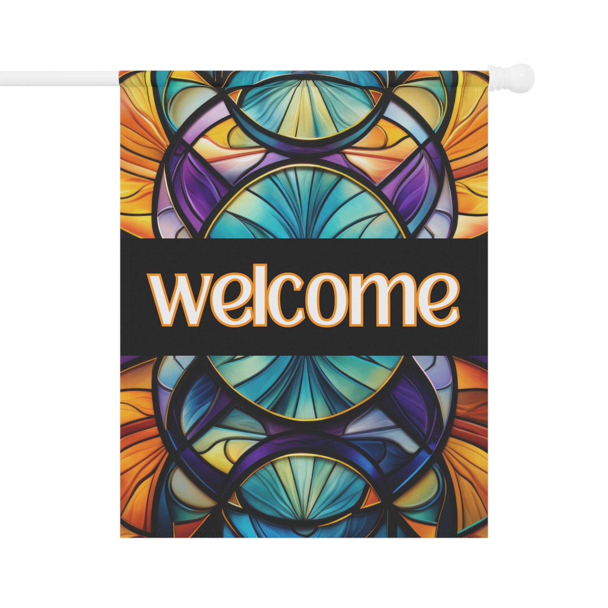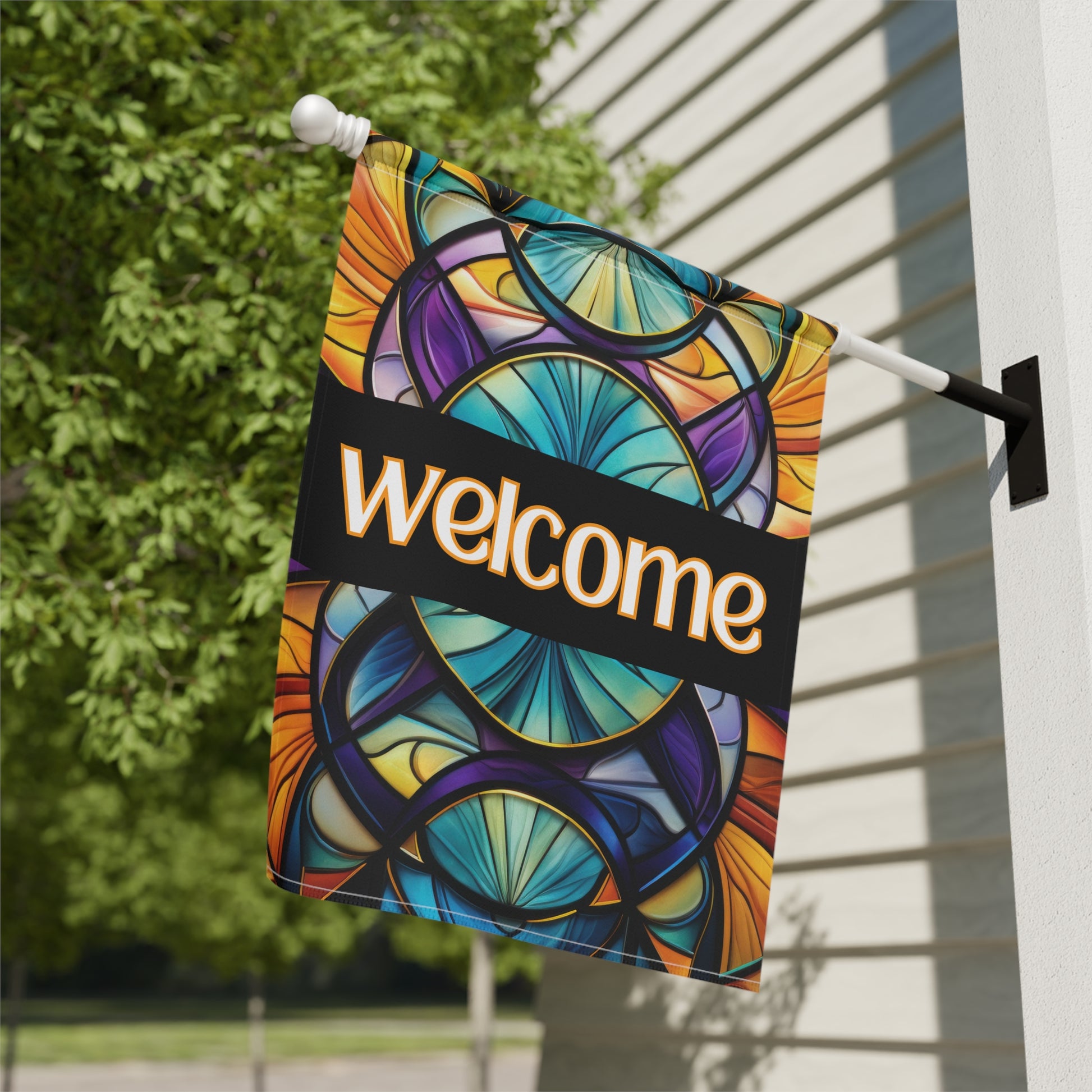 Welcome Stained Glass 2-Sided Garden & House Flag/Banner